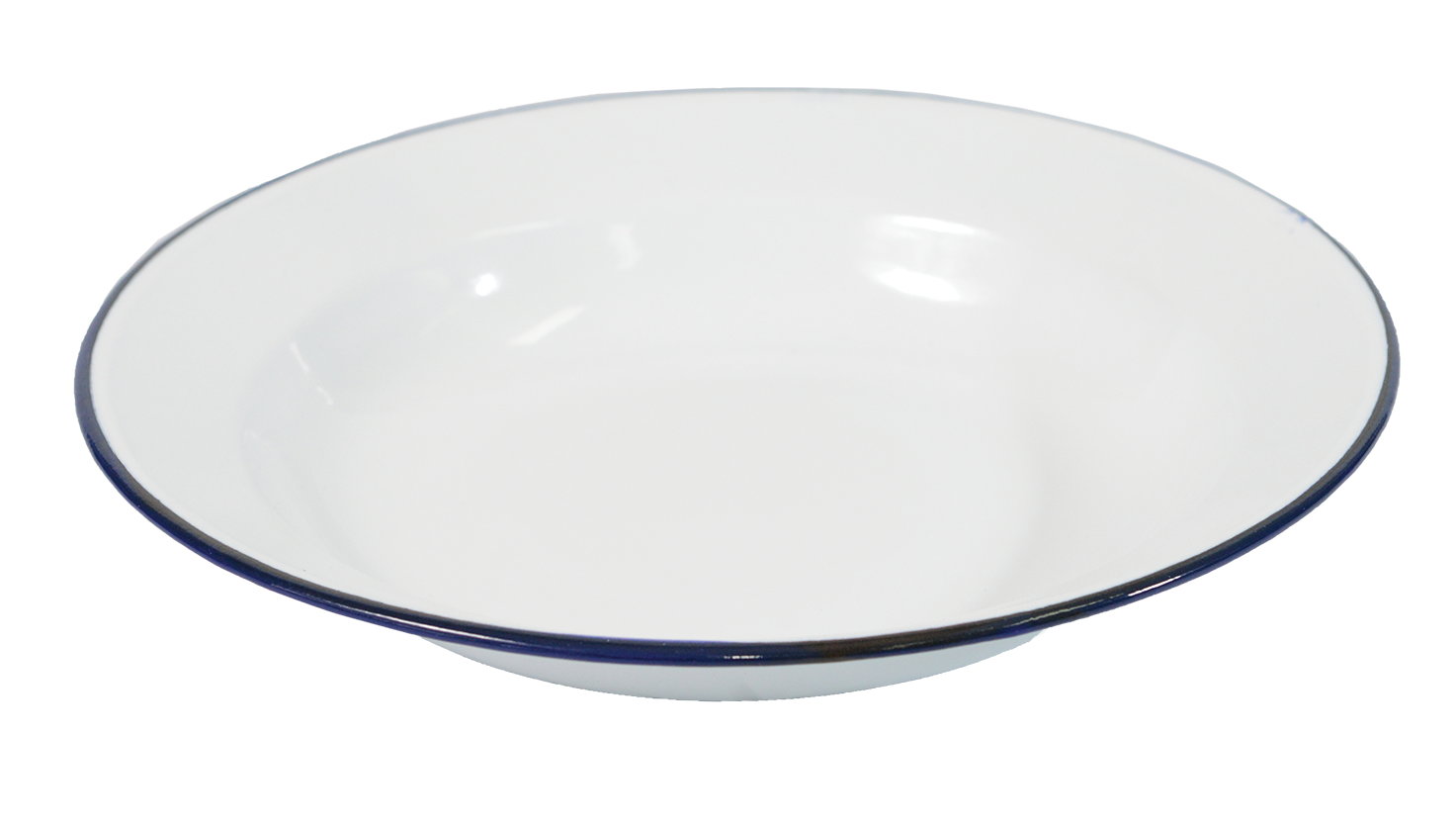Enamel 24cm Soup Plate / Bowl – White with Blue Trim