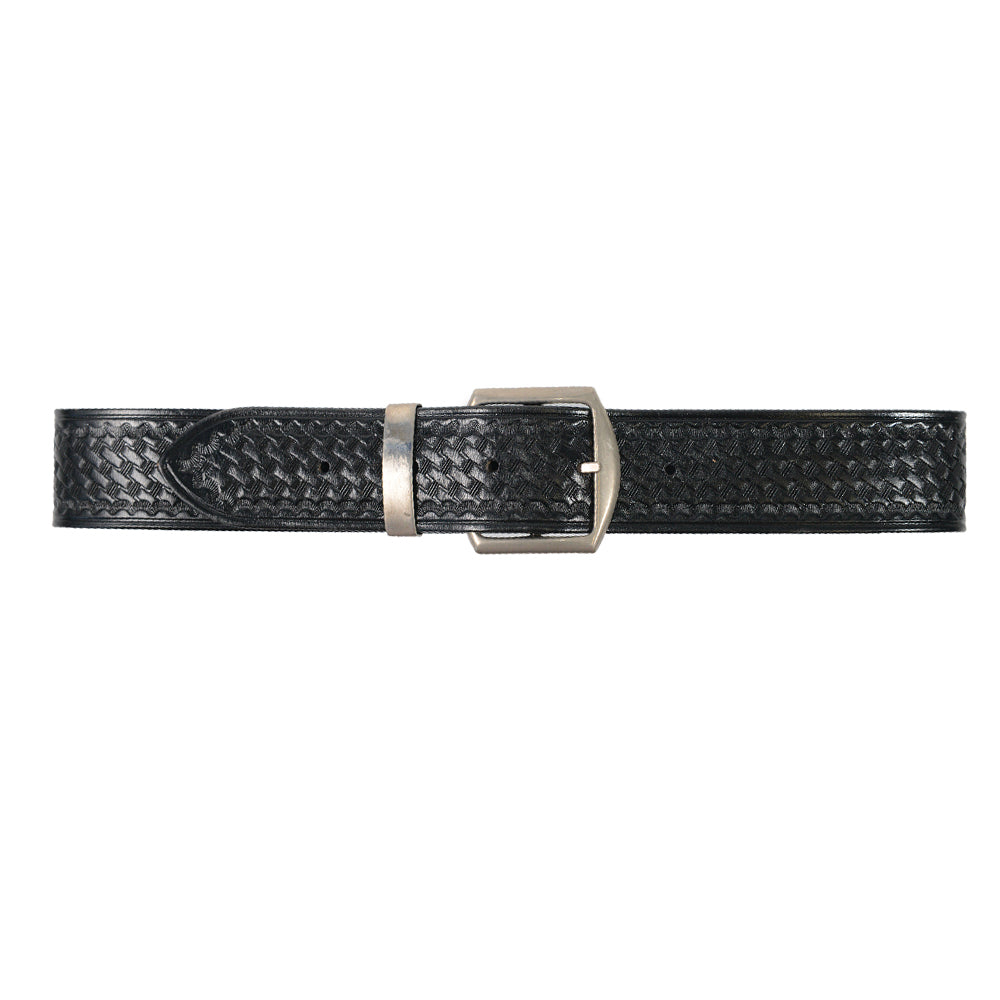 Heavy Duty Leather basket weave pattern security belt with silver buckle and silver loop holder