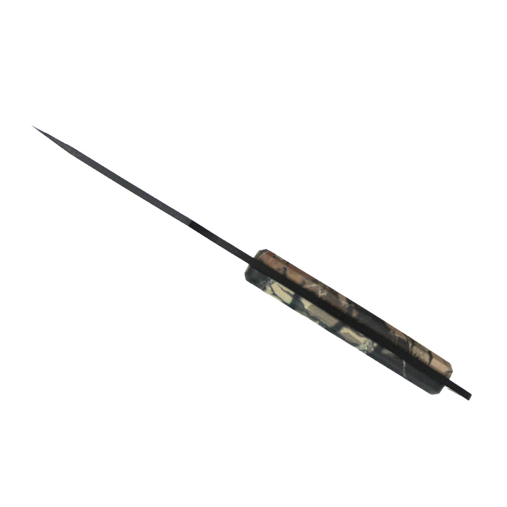 The camouflage handle and lightweight design add to the knife's comfort and versatility.