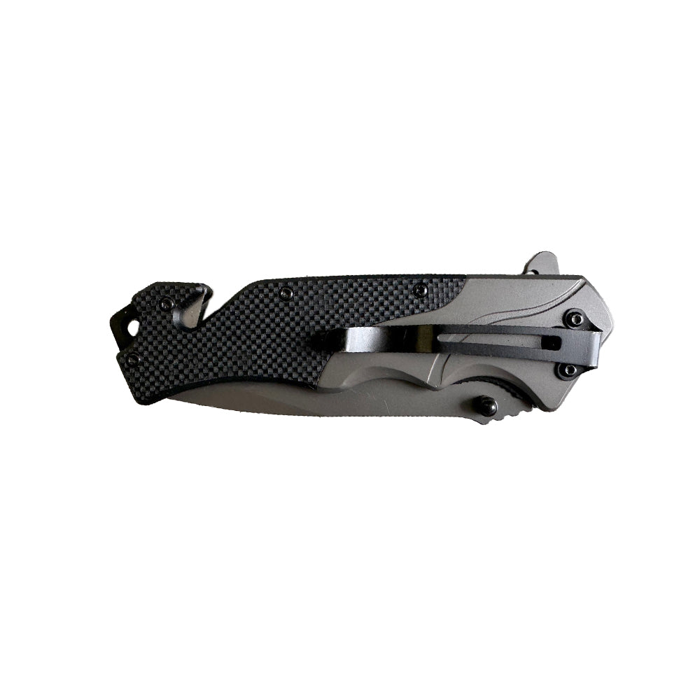 Constructed from premium 7Cr17 stainless steel, this robust tactical knife boasts a sizable cutting edge and built-in seat-belt cutter, ideal for emergency scenarios.
